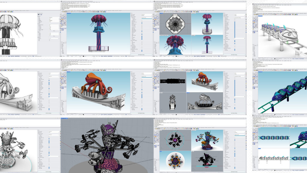 - Jason Mills, Director of Visual Development, built rides and attractions in Rhino, adding theming, color, and texture.
