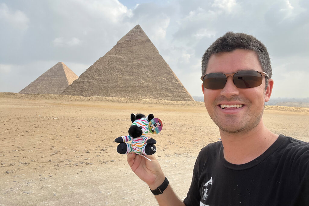 Spot’s biggest travel flex yet: hanging with Nick Pelisek at the pyramids.